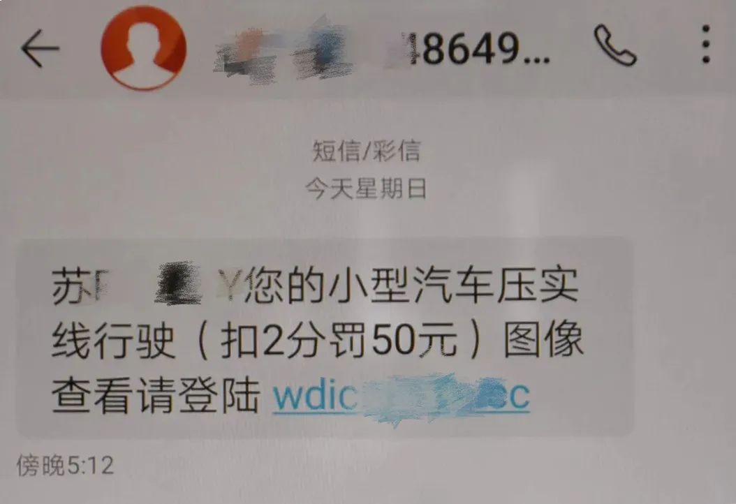 近日,市民徐先生收到這樣一條信息,內(nèi)容為:“某某車牌車主,您的小型汽車壓實線行駛(扣2分罰50元)圖像查看請登錄wdicn*****.cc網(wǎng)址?!?/span>