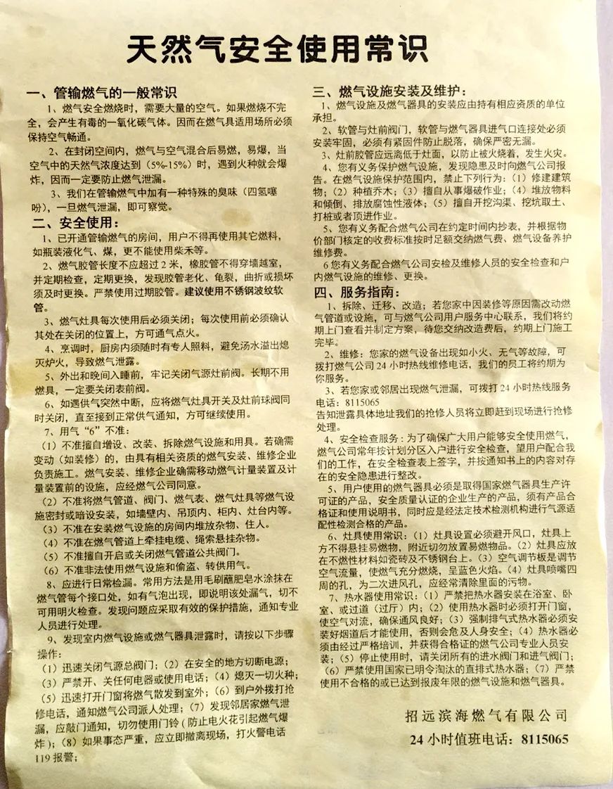 為了保障居民生產(chǎn)生活安全,預(yù)防因燃?xì)馐褂貌划?dāng)發(fā)生漏氣現(xiàn)象,今日,招遠(yuǎn)市濱海燃?xì)夤?,?duì)招遠(yuǎn)的部分小區(qū)進(jìn)行入戶檢查燃?xì)馐褂们闆r。