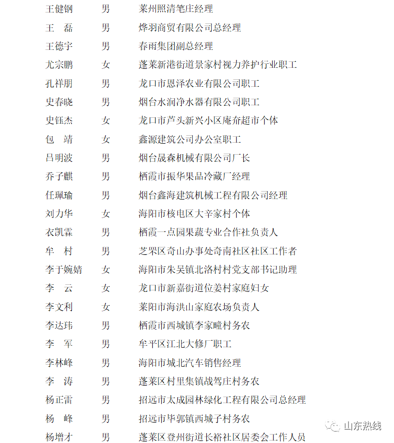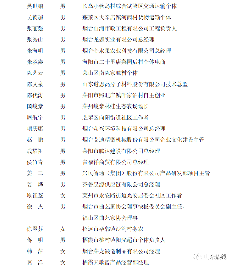 2020年煙臺(tái)市鄉(xiāng)村“好青年”入選名單