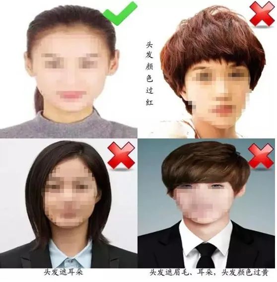 頭發(fā)不能遮擋耳朵、眉毛,染發(fā)不能太明顯。
