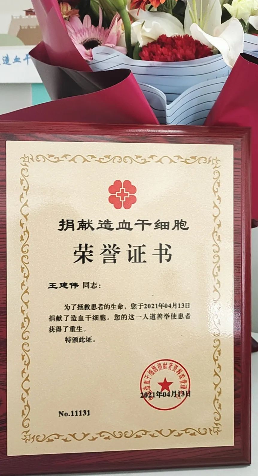 當(dāng)天,經(jīng)過(guò)四個(gè)多小時(shí),王建偉完成了造血干細(xì)胞采集。談到捐獻(xiàn)過(guò)程,王建偉說(shuō):“都還好,沒(méi)什么特別的。就是四個(gè)多小時(shí)躺著一動(dòng)不動(dòng)有點(diǎn)兒難受,胳膊都是酸麻的?!?/span>