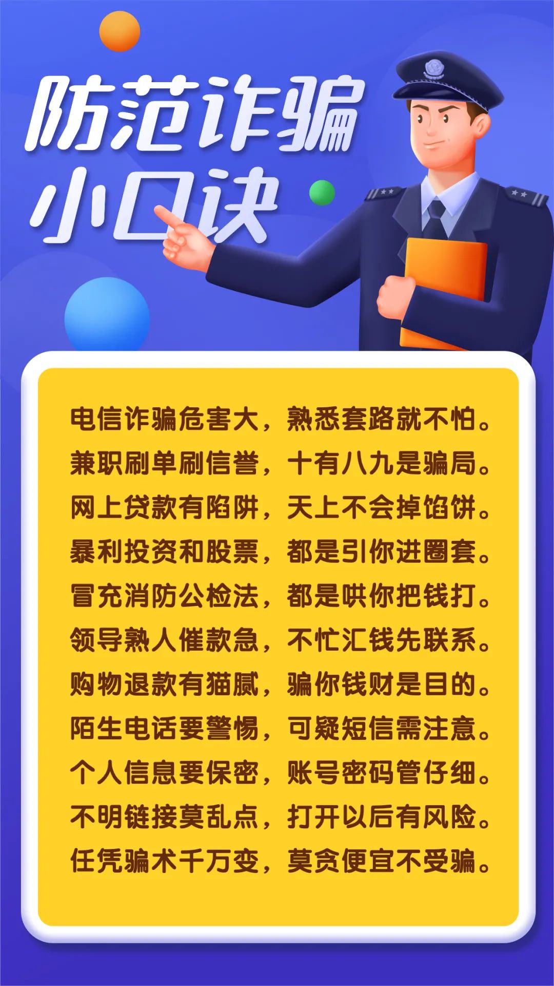 我們總結(jié)了一套防范詐騙小口訣
