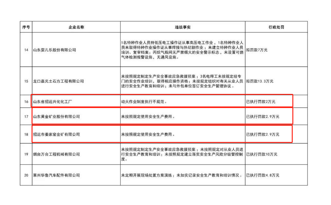 為深入推進(jìn)全市安全生產(chǎn)大排查大整治行動(dòng),推動(dòng)各類事故隱患徹底整改,從源頭上防范和遏制事故發(fā)生,保障人民群眾生命財(cái)產(chǎn)安全,煙臺(tái)市應(yīng)急管理部門不斷加大安全生產(chǎn)執(zhí)法檢查和處罰力度,近日,向20家企業(yè)開(kāi)出了高額罰單,罰款數(shù)額都在2萬(wàn)元以上,最高達(dá)21.45萬(wàn)元!