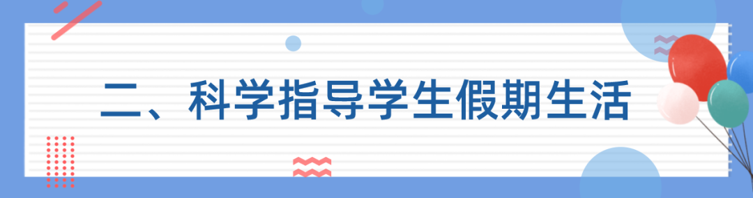 要根據(jù)當(dāng)?shù)貙嶋H,立足于豐富假期生活、促進(jìn)健康成長、增強實踐能力、培養(yǎng)創(chuàng)新精神,爭取有關(guān)部門和單位支持,廣泛利用體育館、博物館、文化館等社會資源,開展豐富多彩的活動,為孩子假期生活提供更多選擇。學(xué)校要掌握假期期間學(xué)生家庭監(jiān)護(hù)情況,按照中小學(xué)家訪“八條要求”,假期中每個學(xué)生至少安排一次家訪,了解學(xué)生的假期學(xué)習(xí)生活狀況,給予科學(xué)指導(dǎo)。要統(tǒng)籌調(diào)控不同年級、不同學(xué)科作業(yè)量和作業(yè)時間,科學(xué)布置暑假作業(yè),鼓勵布置活動性、實踐性、探究性作業(yè),可以安排適量的勞動家庭作業(yè),注重學(xué)生良好生活學(xué)習(xí)習(xí)慣的養(yǎng)成。要指導(dǎo)家長在做好疫情防控前提下,教育引導(dǎo)孩子加強體育鍛煉、開展文藝活動、強化勞動實踐、做好近視防控等,避免家長盲目送孩子參加輔導(dǎo)培訓(xùn),減輕學(xué)生培訓(xùn)負(fù)擔(dān)。學(xué)校要統(tǒng)籌做好中高考畢業(yè)生的假期安排。要扎實做好內(nèi)地民族班、特殊教育學(xué)校等假期留校學(xué)生管理服務(wù)工作,精心安排學(xué)習(xí)活動,做好生活保障,關(guān)注學(xué)生思想狀態(tài),嚴(yán)格落實值班帶班制度。