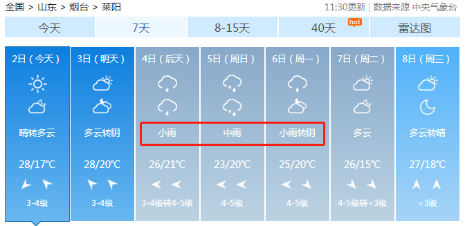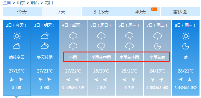 接下來看看煙臺各區(qū)市天氣情況