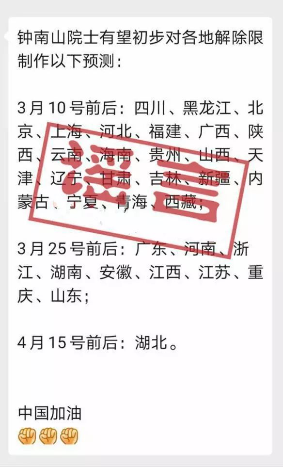 全宇宙只有不到1%的人點(diǎn)擊上方進(jìn)入招遠(yuǎn)信息港你真是個(gè)特別的人近日,網(wǎng)上流傳“鐘南山院士有望初步對(duì)各地解除限制作預(yù)測(cè)”,其中提及:3月10日到25日前后,包括山東在內(nèi)的大多數(shù)省份將解除限制,4月15日前