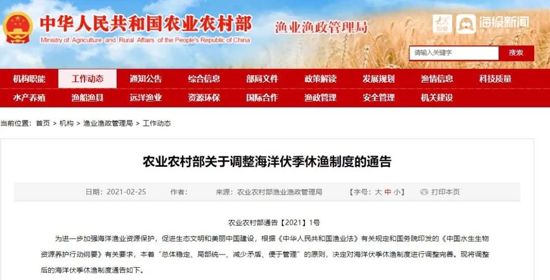 全宇宙只有不到1%的人點擊上方進入招遠信息港你真是個特別的人近日,農(nóng)業(yè)農(nóng)村部發(fā)布《農(nóng)業(yè)農(nóng)村部關(guān)于調(diào)整海洋伏季休漁制度的通告》決定對海洋伏季休漁制度進行調(diào)整完善,對渤海、黃海、東海及北緯12度以北的南海