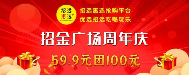 招金廣場1周年店慶!招金廣場1周年店慶!招金廣場1周年店慶!招金廣場1歲生日派對狂歡加倍超值HIGH玩!59.9元搶購100元代金券20+商家通用購買①點擊下方小程序可直接搶購每人限購兩張②關注招遠惠