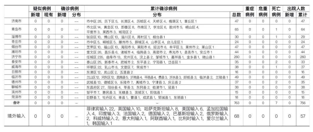 全宇宙只有不到1%的人點擊上方進入招遠信息港你真是個特別的人2020年9月15日0時至24時:山東無本地住院疑似病例、確診病例。累計報告確診病例763例,死亡7例,治愈出院756例。山東無新增境外輸入