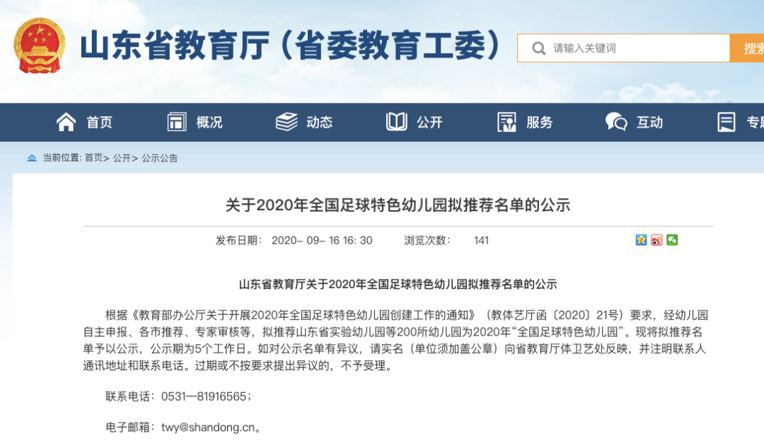 全宇宙只有不到1%的人點擊上方進入招遠信息港你真是個特別的人近日,省教育廳公示了2020年“全國足球特色幼兒園”擬推薦名單,全省共有200所幼兒園入圍,煙臺11席!招遠市玲瓏集團東村幼兒園就在其中!趕