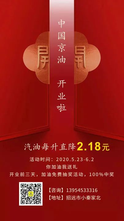全宇宙只有不到1%的人點擊上方進入招遠信息港你真是個特別的人好消息!中國京油加油站招遠站盛大開業(yè)!2020年5月23日至2020年6月2日開業(yè)送好禮,優(yōu)惠大酬賓重重驚喜等你來!即日起連續(xù)三天轉(zhuǎn)發(fā)此鏈接