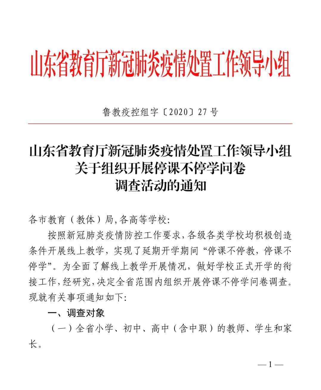 全宇宙只有不到1%的人點擊上方進入招遠信息港你真是個特別的人近日山東省教育廳新冠肺炎疫情處置工作領(lǐng)導(dǎo)小組發(fā)布通知!山東省教育廳新冠肺炎疫情處置工作領(lǐng)導(dǎo)小組關(guān)于組織開展停課不停學(xué)問卷調(diào)查活動的通知各市教