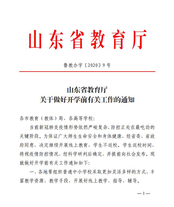 全宇宙只有不到1%的人點(diǎn)擊上方進(jìn)入招遠(yuǎn)信息港你真是個(gè)特別的人剛剛,山東省教育廳印發(fā)《關(guān)于做好開學(xué)前有關(guān)工作的通知》,決定繼續(xù)開展線上教育,學(xué)生不返校。學(xué)生返校時(shí)間,將視疫情防控情況,經(jīng)科學(xué)研判后確定,