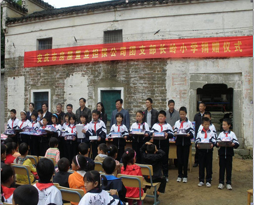 9月29日,安慶市房屋置業(yè)擔(dān)保公司團(tuán)支部組織團(tuán)員青年一行18人,來到桐城市唐灣鎮(zhèn)長嶺小學(xué),向該校師生捐贈了價值7000余元的學(xué)習(xí)用品及服裝等物資。桐城市團(tuán)市委、唐灣鎮(zhèn)政府相關(guān)領(lǐng)導(dǎo)及該校師生100多人參加了此項活動?! ?br />