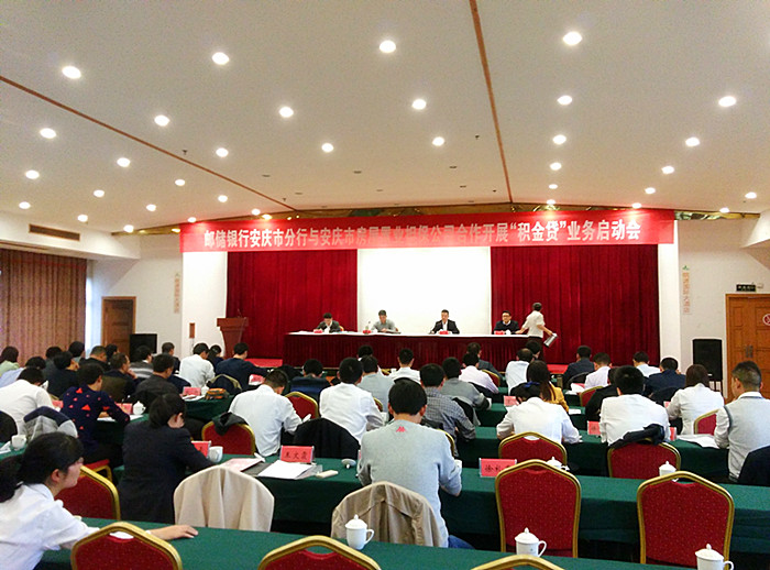 11月6日下午,安慶市房屋置業(yè)擔(dān)保公司與郵政儲(chǔ)蓄銀行安慶市分行聯(lián)合召開“置業(yè)消費(fèi)貸”業(yè)務(wù)啟動(dòng)會(huì)。安慶市房屋置業(yè)擔(dān)保公司董事長(zhǎng)、總經(jīng)理沈軍、副總經(jīng)理鄧寅和郵政儲(chǔ)蓄銀行安慶市分行黨委書記、行長(zhǎng)戴四清、副行長(zhǎng)李金發(fā)等出席啟動(dòng)會(huì),擔(dān)保公司七縣一市分公司經(jīng)理及郵儲(chǔ)銀行各縣支行行長(zhǎng)等60余人參加了會(huì)議。