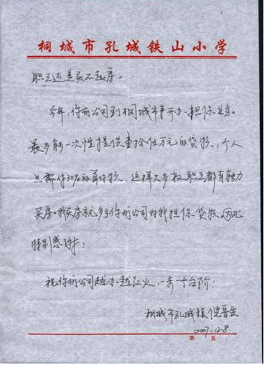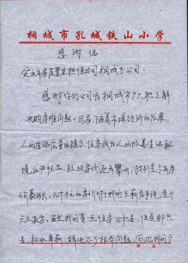 客戶致桐城分公司的一封感謝信